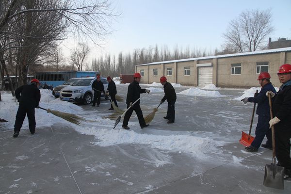 14日一大早,公司機(jī)關(guān)及各基層廠隊(duì)干部職工都積極投身到掃雪行動(dòng)中。雖然室外氣溫很低,許多人的手和臉也被凍得通紅,然而,這一切絲毫沒有影響大家的勞動(dòng)熱情和效率。職工們團(tuán)結(jié)協(xié)作、井然有序,揮舞著鐵鍬和笤帚,鏟的鏟、掃的掃,干得熱火朝天,形成了一道美麗的風(fēng)景線!經(jīng)過大家一個(gè)多小時(shí)的努力,各廠區(qū)出入口、主干道等處積雪被全部鏟除、掃凈,確保了行車道路通暢,為公司安全生產(chǎn)和職工出行掃除了障礙。