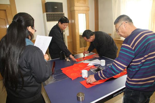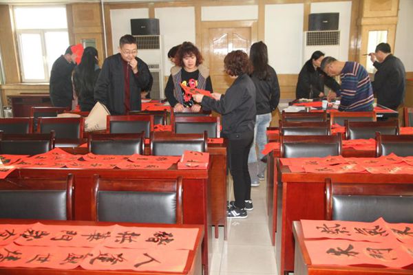 火紅的對聯(lián),淡淡的墨香,一副副工整喜氣的春聯(lián)擺滿了大廳。春聯(lián)內(nèi)容既有喜迎豬年辭舊迎新的美好愿景,也有歌頌黨恩、大展宏圖的勵志詞句,一幅幅精彩的書法作品,一句句吉祥如意的春聯(lián),不僅讓職工目睹了書法家的風(fēng)采,更為即將來臨的春節(jié)增添了濃濃的喜慶氛圍。機關(guān)干部職工紛紛前來領(lǐng)取現(xiàn)場寫好的春聯(lián)、更接受“私人訂制”,現(xiàn)場喜氣洋洋、歡聲笑語,不僅送出了新春的祝福更送出了濃厚的年味兒和文化味。